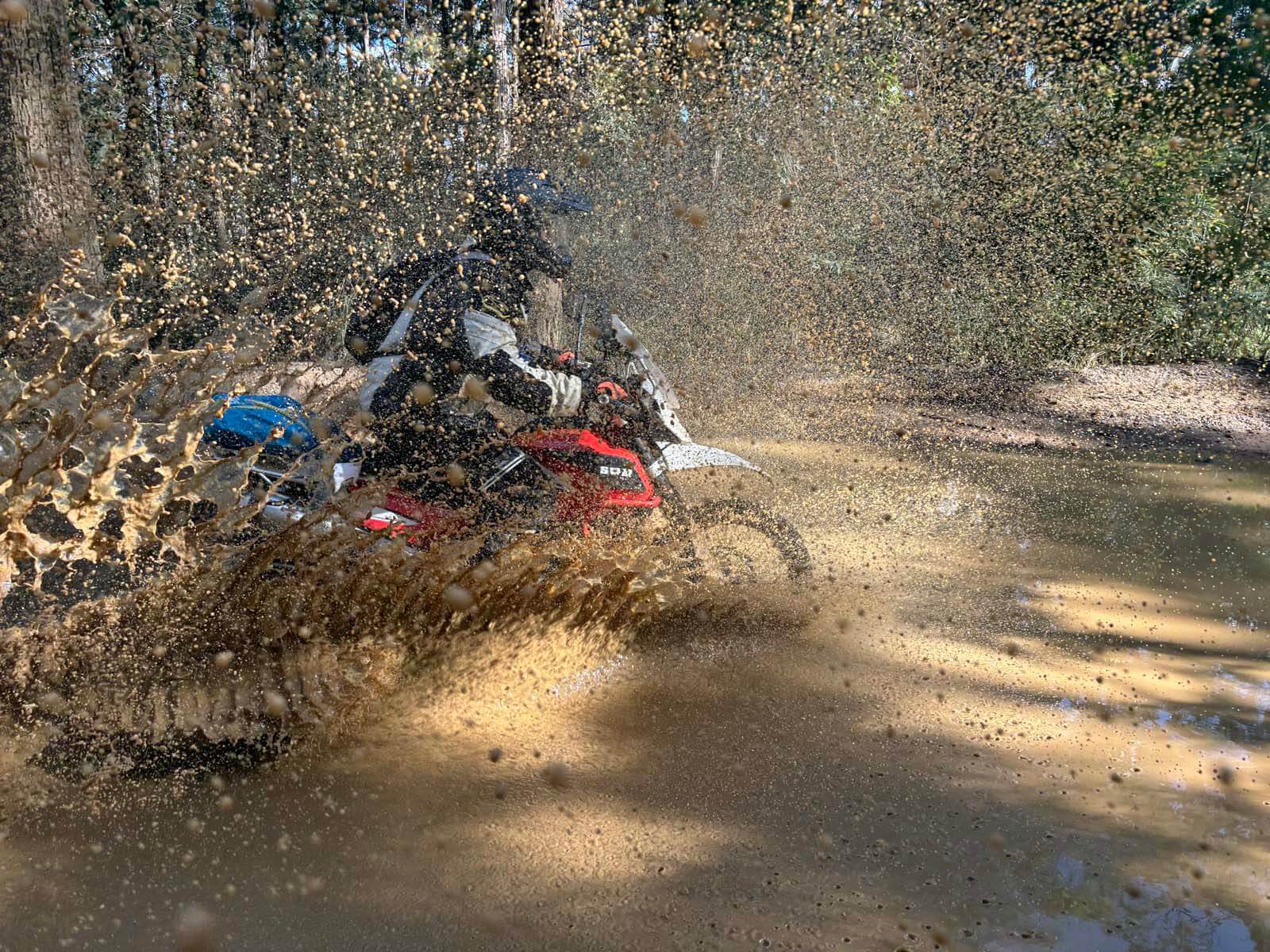 Body position – especially while standing – is something that road riders need to learn to become competent when the tar road ends. Sam is an eager student and learns plenty by following Abbey the mid-pack sweep. Abbey is proof that you don’t need to be tall or strong to ride a big twin.