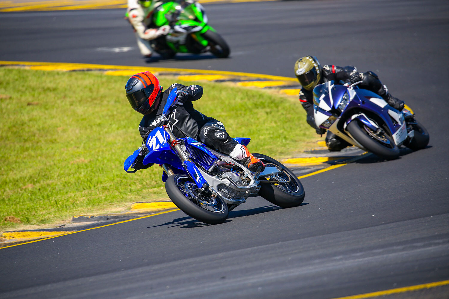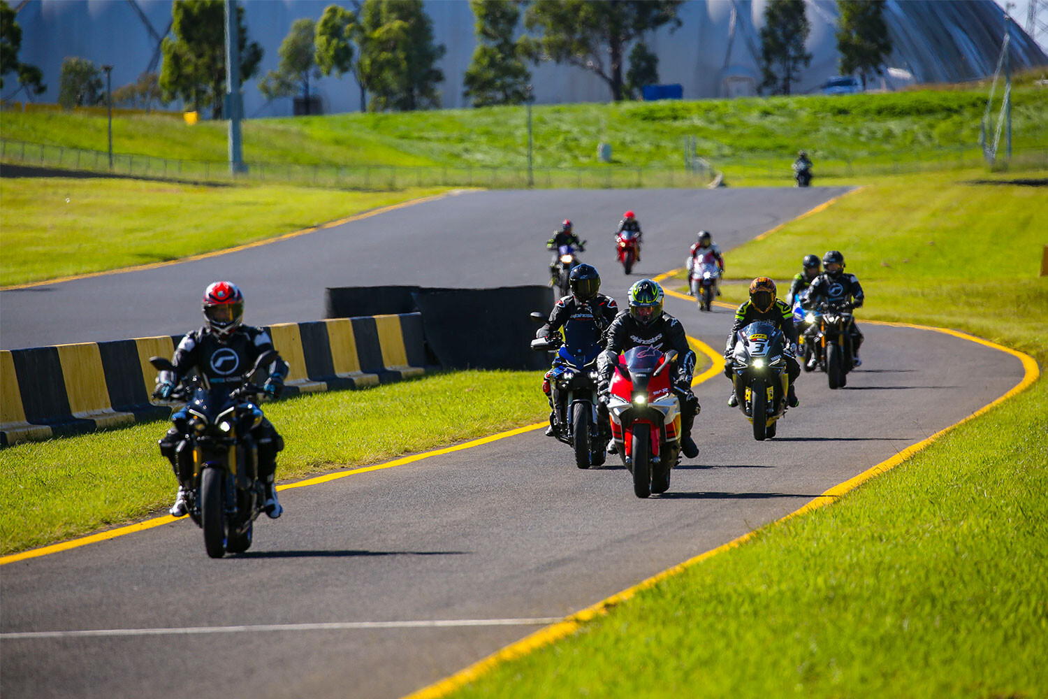 Triple-cylinder enthusiast Paul Marelic took the honour of being one of the first to head out on track aboard the fleet of new YZF-R9 hire bikes provided by MotoSchool. He said the chance to ride a brand-new CP3-powered machine at Sydney Motorsport Park was too good to pass up. “I’ve got my own bikes, but I’ve wanted to sample the new YZF-R9 since it was released, so I couldn’t pass up an opportunity to ride a new one at Sydney Motorsport Park,” he said. “What I’m really looking forward to is sampling the three-cylinder engine. I’ve never tried a triple on track.”