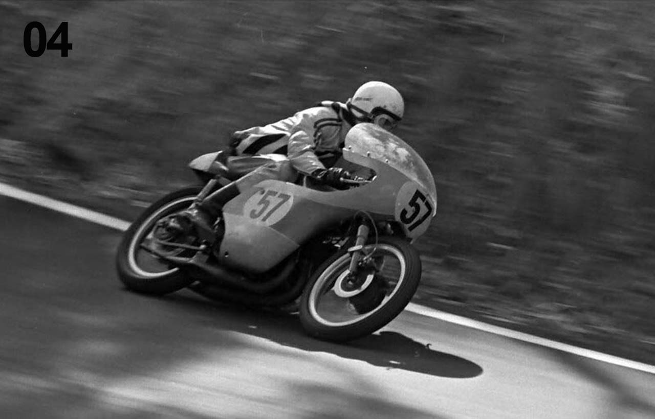 A naturally fast rider, a succession of speeding fines suggested road racing circuits might be a cheaper way for Geoff to obtain his speed jollies. So he began racing at the start of 1968 on the 250 Honda before progressing to a 350 Honda.