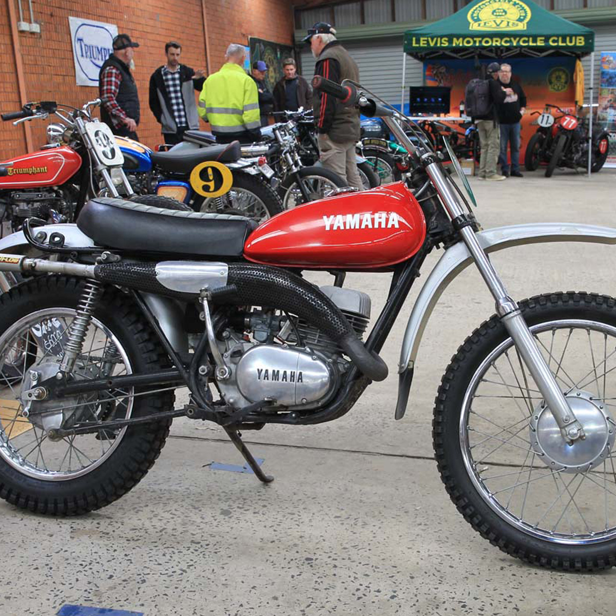 While the event's theme was early 20th-century board trackers from the famous American marques of Harley Davidson and Indian, the tuning fork faithful still turned out to display some classic old Yamaha machinery.