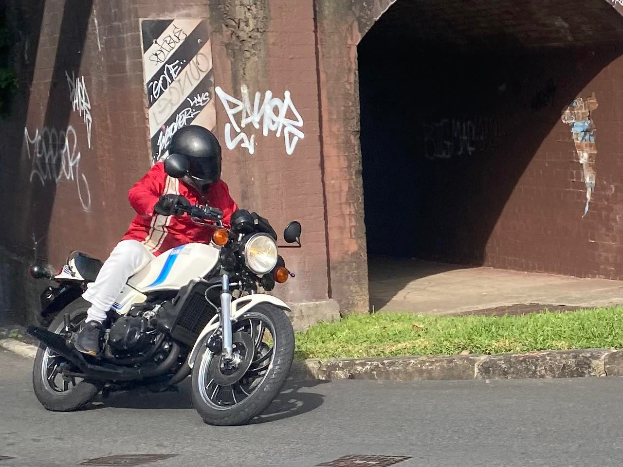 55-year-old Sydney-based photographer Andy Baker is originally from Essex in the UK where he bought his first Yamaha, a second-hand 50cc FS1-E in 1983. He now races vintage dirt track on two-stroke models such as RT360 and DT250.