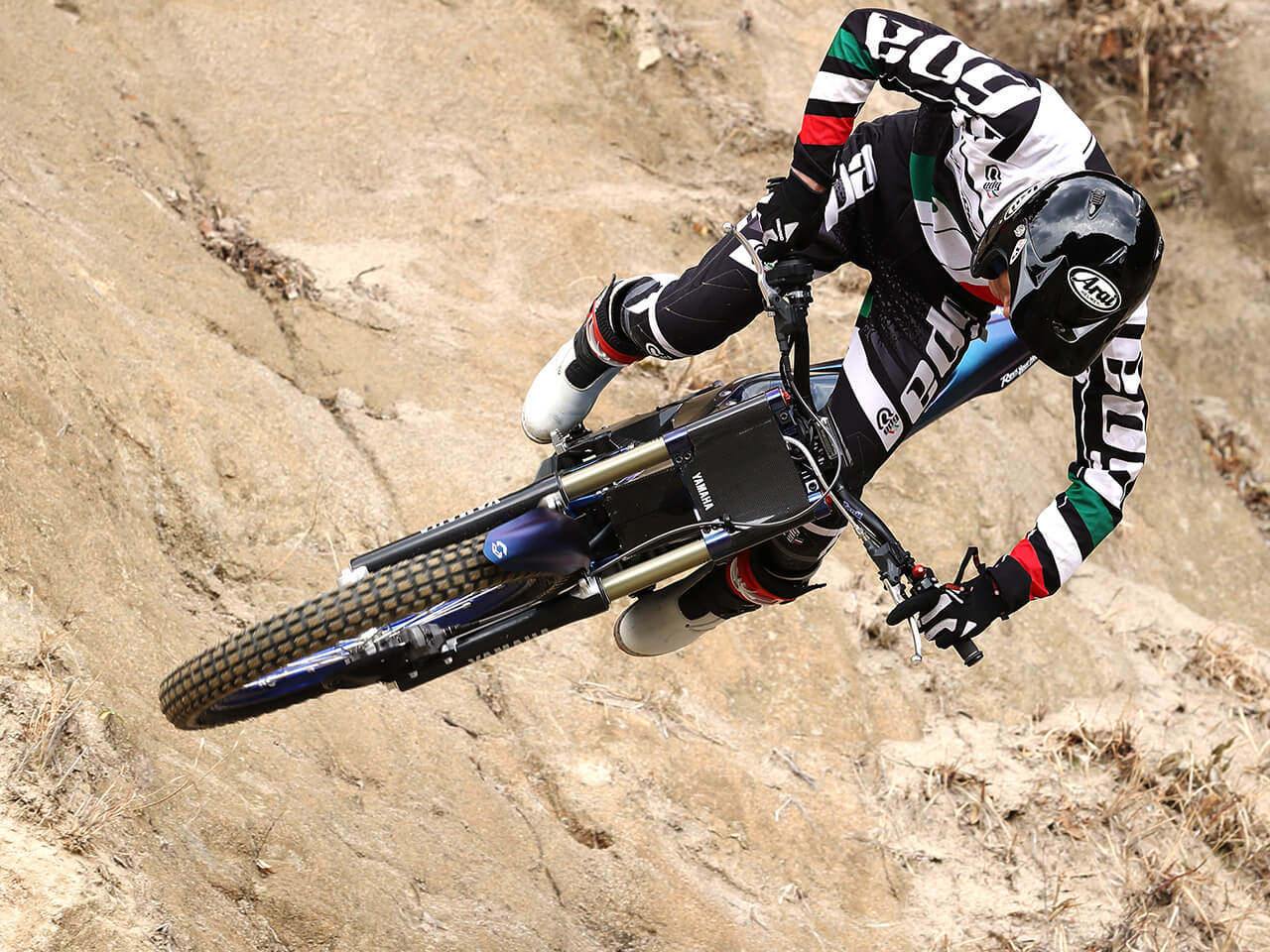 TY-E features include 1) a high rotation type compact high-power motor that achieves high off-road performance with both powerful low speed torque and extended acceleration, 2) motor control technology that achieves an excellent response and a power feeling from extremely low to high speed ranges, 3) a power unit equipped with a mechanical clutch that secures instantaneous power and control, and an electric motor and optimized flywheel that realizes excellent traction performance, 4) high-output of a newly designed compact high-output battery pack with compact and lightweight components, 5) a CFRP monocoque frame that is at the lightest possible weight, while securing optimal rigidity and battery storage space, and 6) extreme slim styling that does not interfere with dynamic rider action.