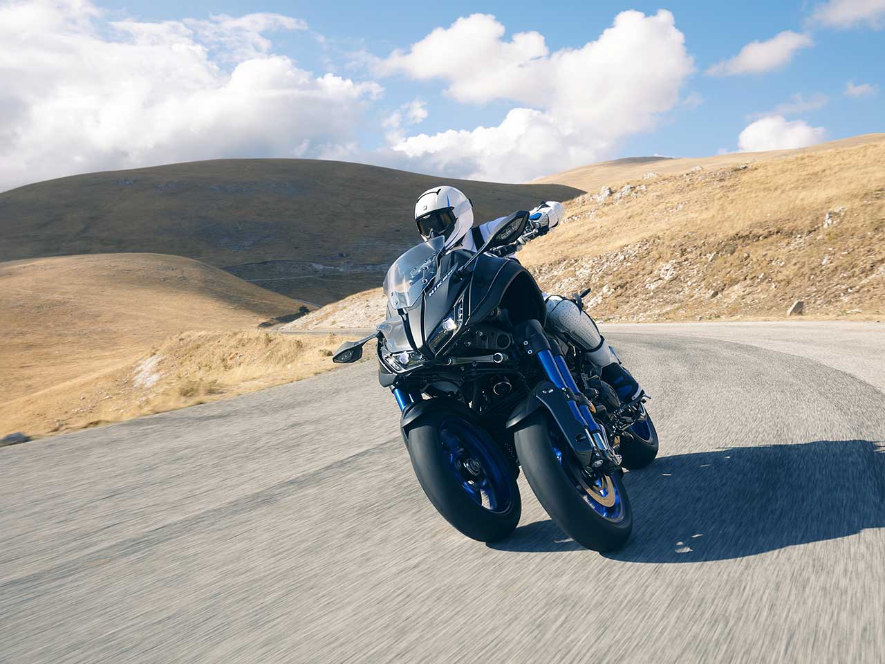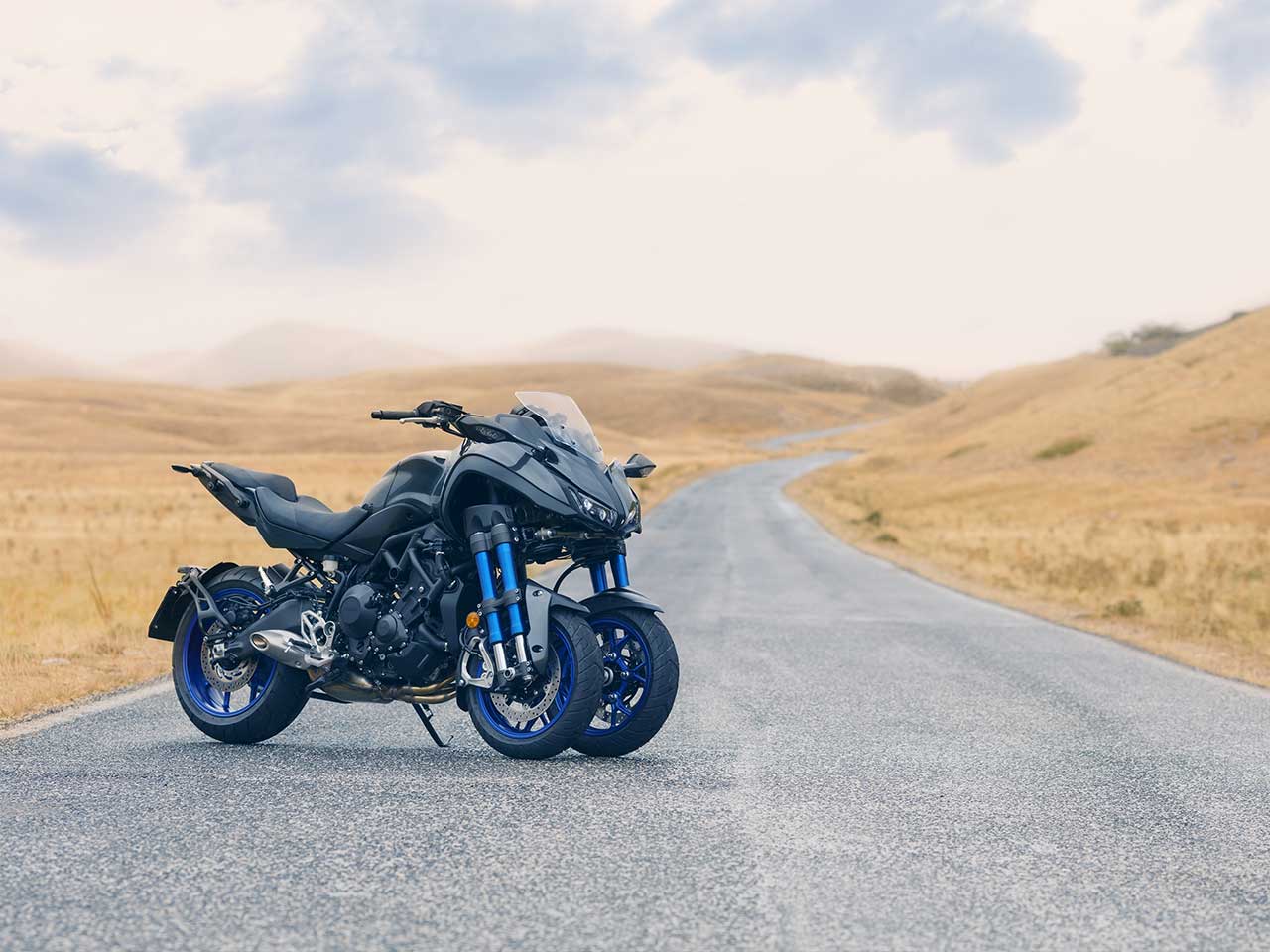 This large-displacement Leaning Multi-Wheeler (LMW) is powered by a liquid-cooled in-line 3-cylinder engine.